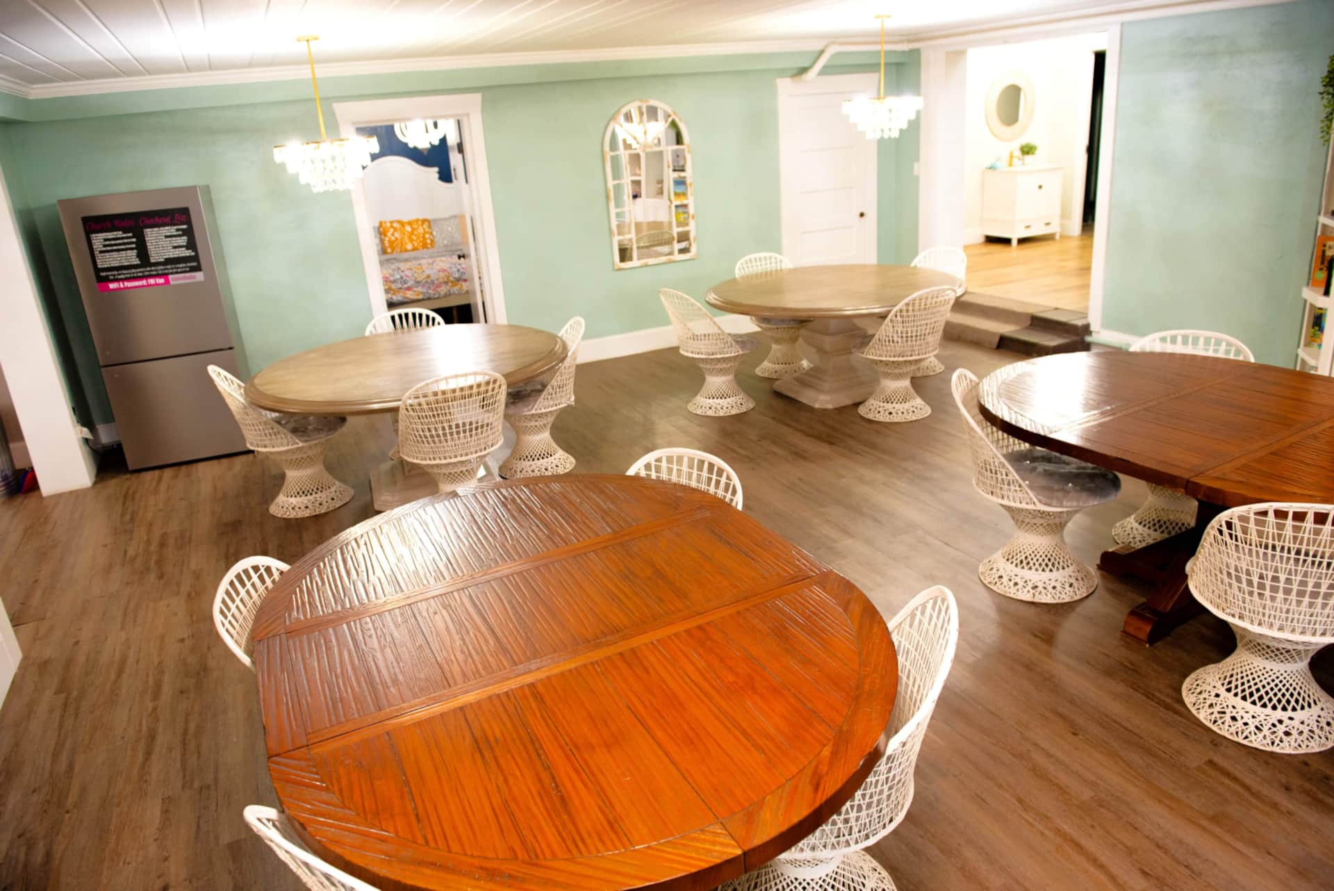 The mansion’s 11+ bedrooms give everyone room to settle, rest, and recharge, while the shared areas bring everyone together.