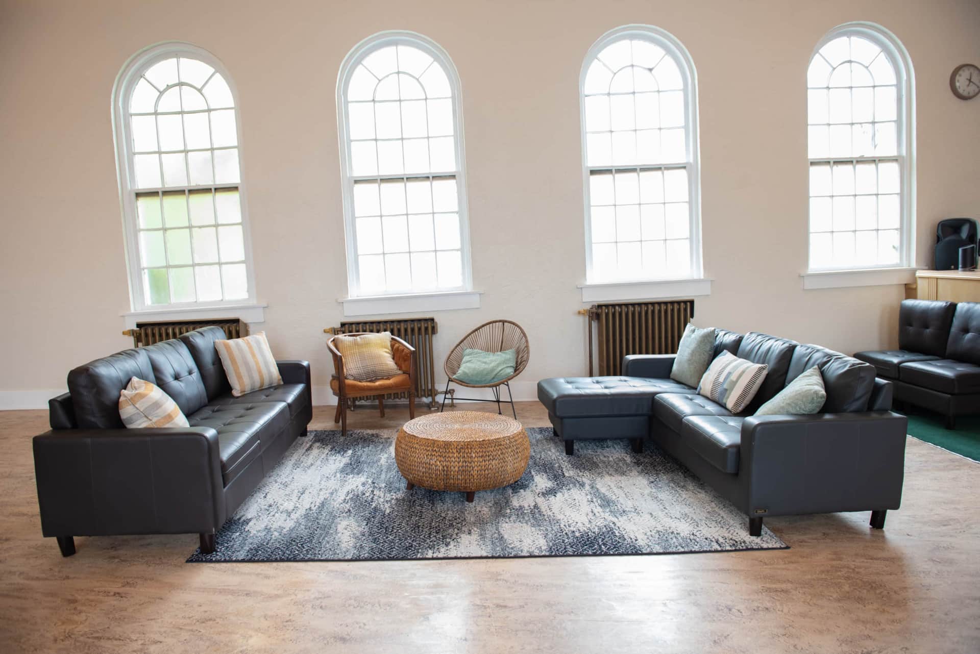 The central hall, originally the main chapel of the historic church, has been transformed into a large, inviting area perfect for team meetings or group dinners. Coaches can run chalk talks, show videos, or gather players for announcements without squeezing into a cramped hotel lobby or relying on unpredictable conference-room availability.